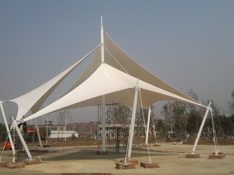 景觀膜結構又稱張拉膜景觀,主要通過膜結構的張拉式 呈現出唯美的結構特征;膜材料是指聚酯纖維基布或PVDF、PVF、PTFE等不同的表面涂層,配以優質的PVC組成的具有穩定的形態,并可承受一定載荷的建筑紡織品。它的壽命因不同的表面涂層而異,一般可達成10-20年;其外觀整潔大方,自潔性強。主要應用于各大公園,世博園,和一些廣場,商場等場所。